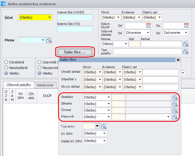 Použijeme pre sledovanie SZČP po dokladoch zadefinovaním konkrétneho SZČP cez Ďalšie filtre v zostave.