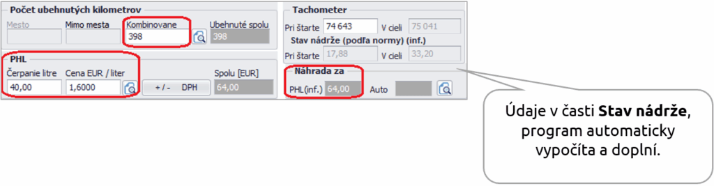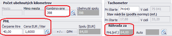 Pri zadaní čerpania PHL v EUR a ceny za liter, vypočíta program náhradu za PHL v časti Náhrada za.