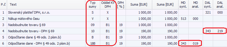 Program zaúčtuje odvod DPH so smerovaním do riadkov 09 a 10 daňového priznania DPH. Zároveň zaúčtuje odpočet DPH so smerovaním do riadku 18 daňového priznania DPH.