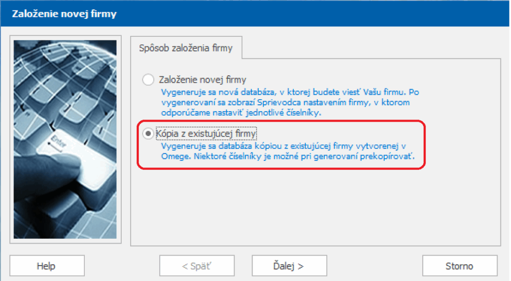 Vytvorenie novej firmy kópiou z existujúcej firmy