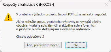Po potvrdení sa existujúci Priebeh výstavby prepíše novým rozpočtom z programu Rozpočty a kalkulácie CENKROS 4.