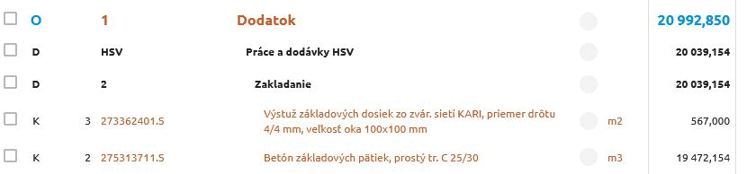 Pre lepšiu orientáciu v Priebehu výstavby sa nahratý dodatok a jeho položky farebne odlíšia: