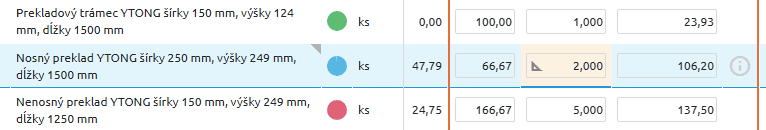 Po editácií bunky je v Priebehu výstavby zapracovaný automatický prepočet. Vďaka nemu sa po ukončení editácie automaticky dopočíta: