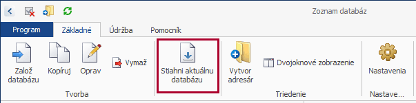 - tu nájdete funkciu Stiahni aktuálnu databázu, na ktorú kliknite,