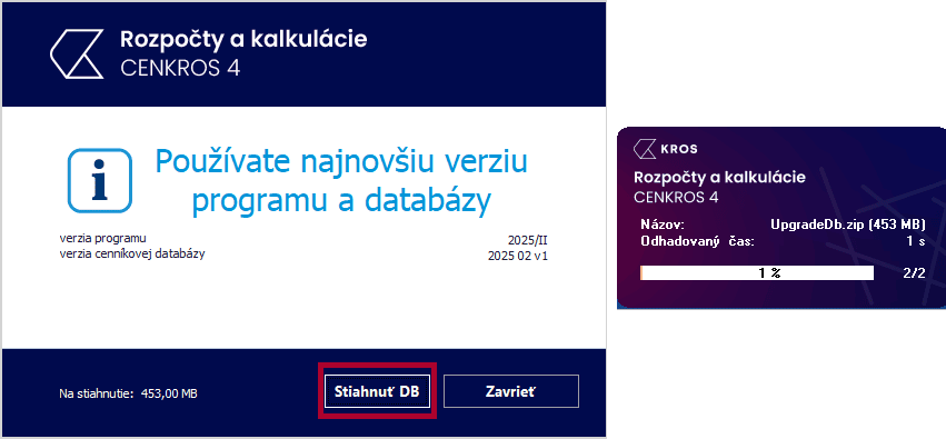 Ako stiahnuť najnovšiu databázu priamo cez program Rozpočty a kalkulácie CENKROS 4