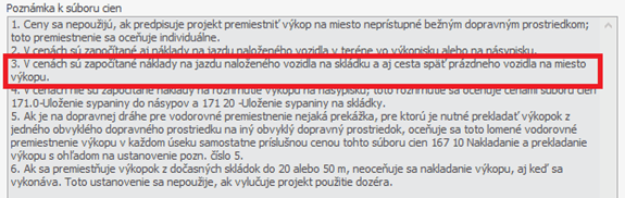 Ukážka poznámky k súboru cien vodorovného premiestnenia výkopku