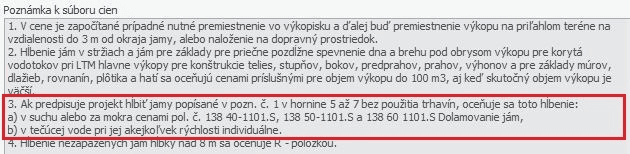 Príklad odkazu na dolamovanie v poznámke k súboru cien