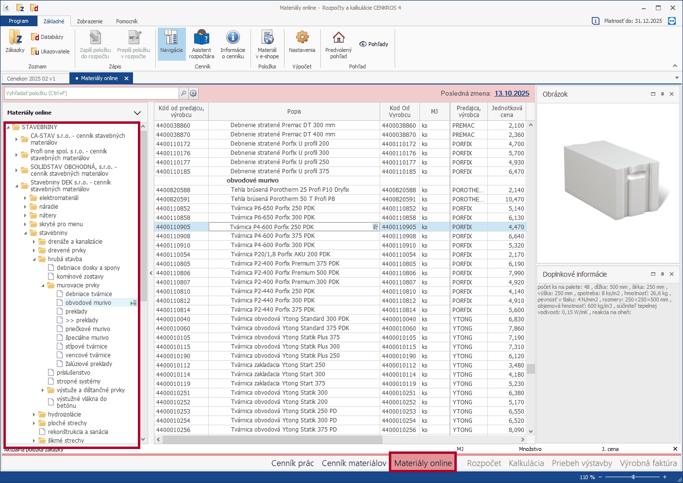 Ak potrebujete pri spracovaní rozpočtov využívať konkrétny materiál od samotného výrobcu alebo predajcu s platným balíkom podpory máte dostupné Materiály online. Ceny týchto materiálov sú pravidelne aktualizované a dopĺňané priamo dodávateľmi.