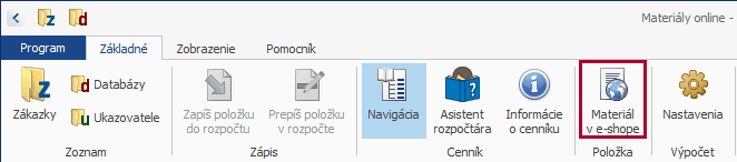 TIP: Niektoré položky v programe majú nastavený aj priamy preklik do e-shopu. Dokážete si tak v rýchlosti pozrieť dostupnosť tovaru na sklade alebo ďalšie doplnkové parametre. Funkciu spustíte kliknutím na ikonu Materiál v e-shope.