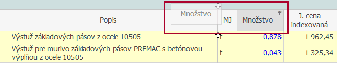 V prípade, že sú v rozpočte stĺpce, ktoré Vás nezaujímajú a nechcete aby sa zobrazovali, môžete tieto stĺpce skryť. Stĺpce skryjete potiahnutím stĺpca smerom nahor, až do chvíle kým sa zobrazí krížik na stĺpci.