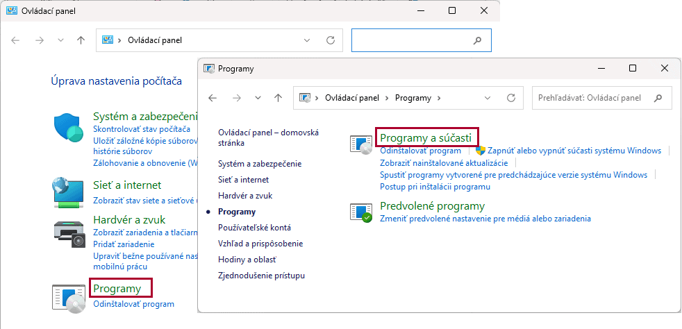 V Ovládacom paneli nájdite Programy a následne časť voľbu Programy a súčasti.