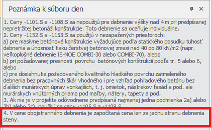 Ukážka poznámky k súboru cien obojstranného debnenia múrov