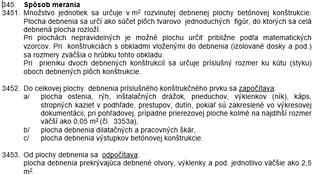 V úvode cenníka 801-1 Bežné stavebné práce je popísaný spôsob merania plochy debnenia.