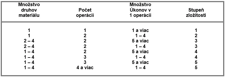 Stupne zložitosti sa stanovia na podklade výkresovej dokumentácie podľa tabuľky: