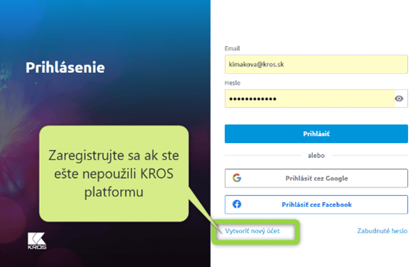 - Ak ste už niekedy archivovali posudky do znaleckej platformy KROS, registrovať sa už nemusíte. Stačí sa prihlásiť svojim emailom a heslom.