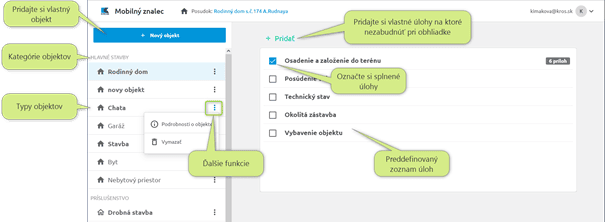 - Kliknutím na konkrétny objekt sa zobrazí zoznam úloh, na ktoré nezabudnúť pri obhliadke