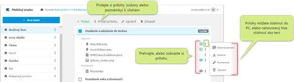 - Následne vo webovej aplikácii si môžete prehrať zvuk, pozrieť fotky, prezrieť poznámky alebo stiahnuť nahovorený hlas ako text
