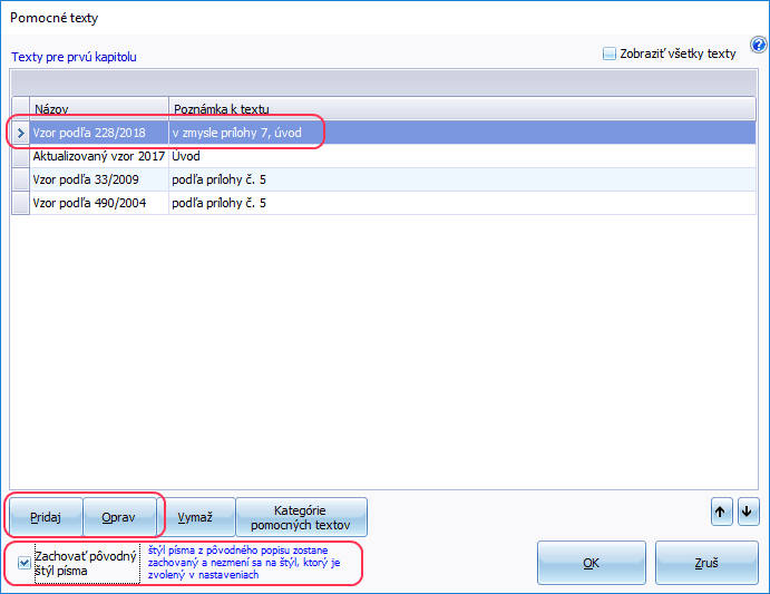 Kde nájdem v novej verzii aktualizované vzorové texty?