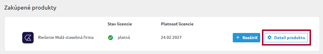 Napravo od názvu zakúpeného produktu kliknite na „Detail produktu„.