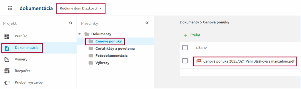 - Uložiť do sekcie Dokumentácia aktuálneho projektu vo formáte PDF/Excel a mať ju kedykoľvek k dispozícii.