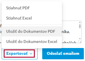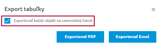 Exportovať tabuľku je možné vo formáte PDF alebo Excel.