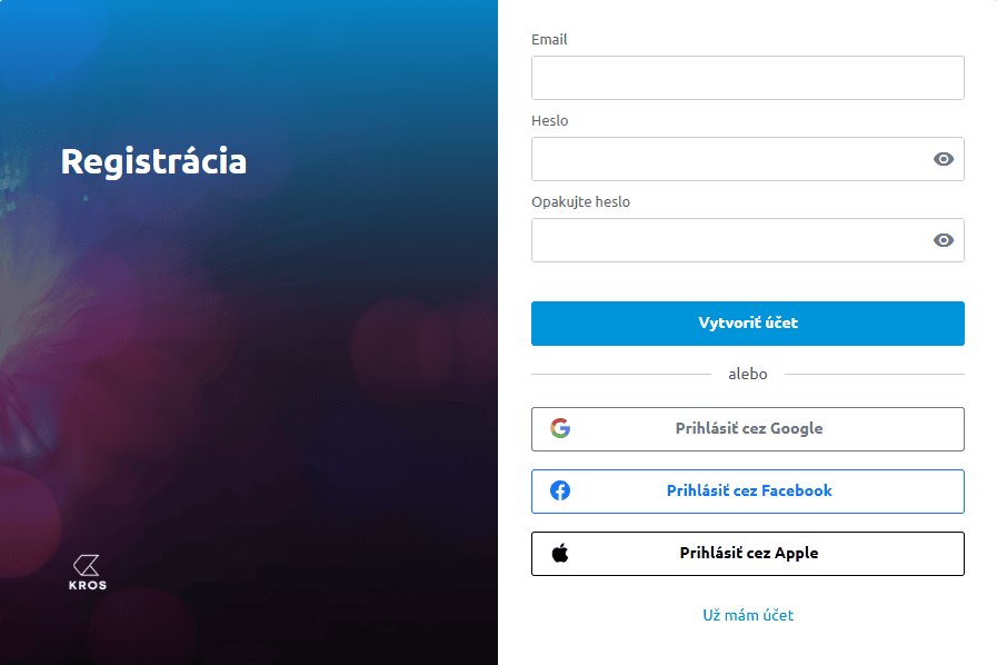 - do KROS platformy sa prihlásite pomocou KROS účtu