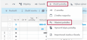 Zmena štruktúry rozpočtu – presúvanie objektov, dielov a položiek
