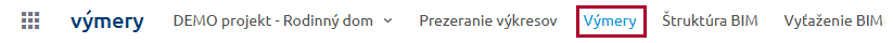 Meranie nad výkresom, prácu s meraniami a tvorbu výkazov výmer umožňuje záložka Výmery.