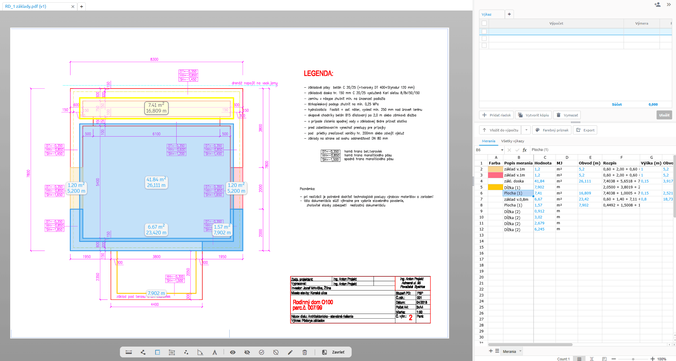 V tabuľke meraní sa zobrazujú merania a vlastností zo všetkých dokumentov (výkresov) pridaných do projektu. Vizuálne prepojenie meraní na výkrese a v tabuľke Vám pomôže rýchlo sa zorientovať, čo už máte spravené.