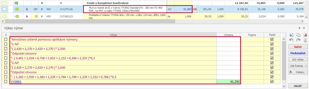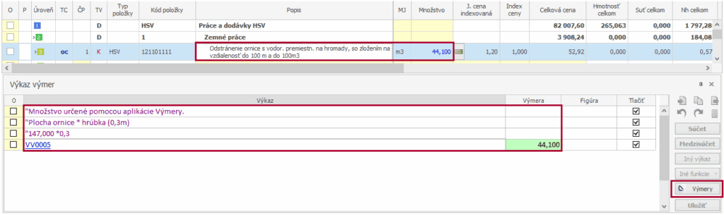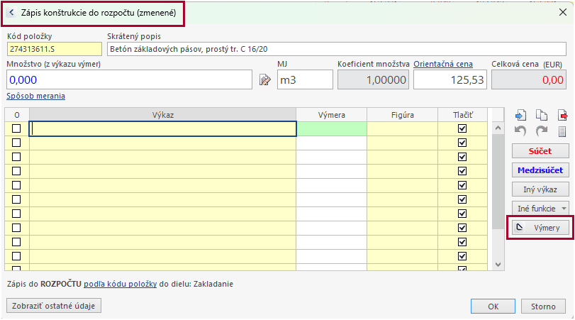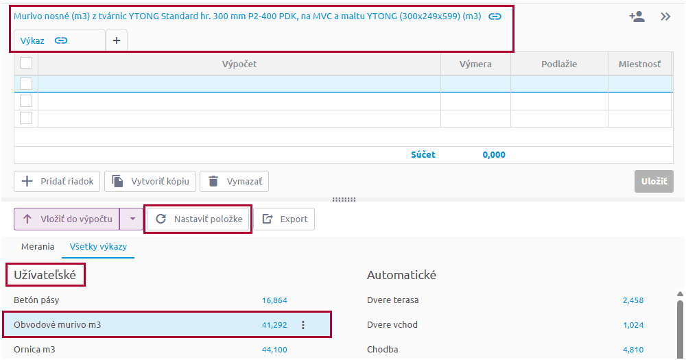 Nastavením položke sa tento výkaz automaticky previaže s aktuálnou položkou a zapíše do rozpočtu.