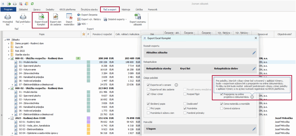 TIP: V programe Rozpočty a kalkulácie CENKROS 4 máte možnosť pri exporte Excel Komplet vygenerovať k položkám, ktorých výkaz výmer bol vytvorený v aplikácii Výmery link s prepojením na online projektovú dokumentáciu.