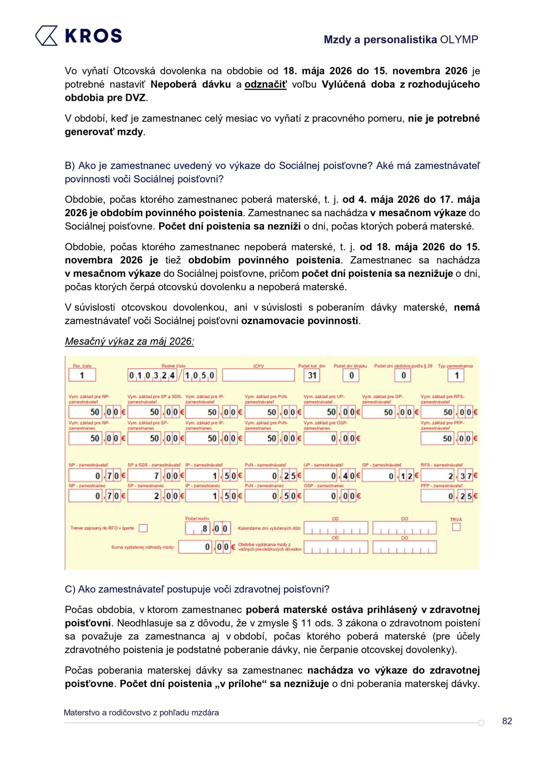 Praktický sprievodca pre mzdárov, ktorý zrozumiteľne pokrýva témy súvisiace s materskou, rodičovskou a otcovskou dovolenkou. Nájdete v ňom kompletný prehľad práv a povinností zamestnancov aj zamestnávateľov, od dávok a oznamovacích povinností až po špecifické pracovné podmienky. Nechýbajú ani vysvetlenia k zdravotnému a sociálnemu poisteniu či konkrétne postupy v programe Mzdy a personalistika OLYMP. Vďaka nemu budete mať istotu, že každú situáciu vyriešite rýchlo a bez zbytočných chýb.