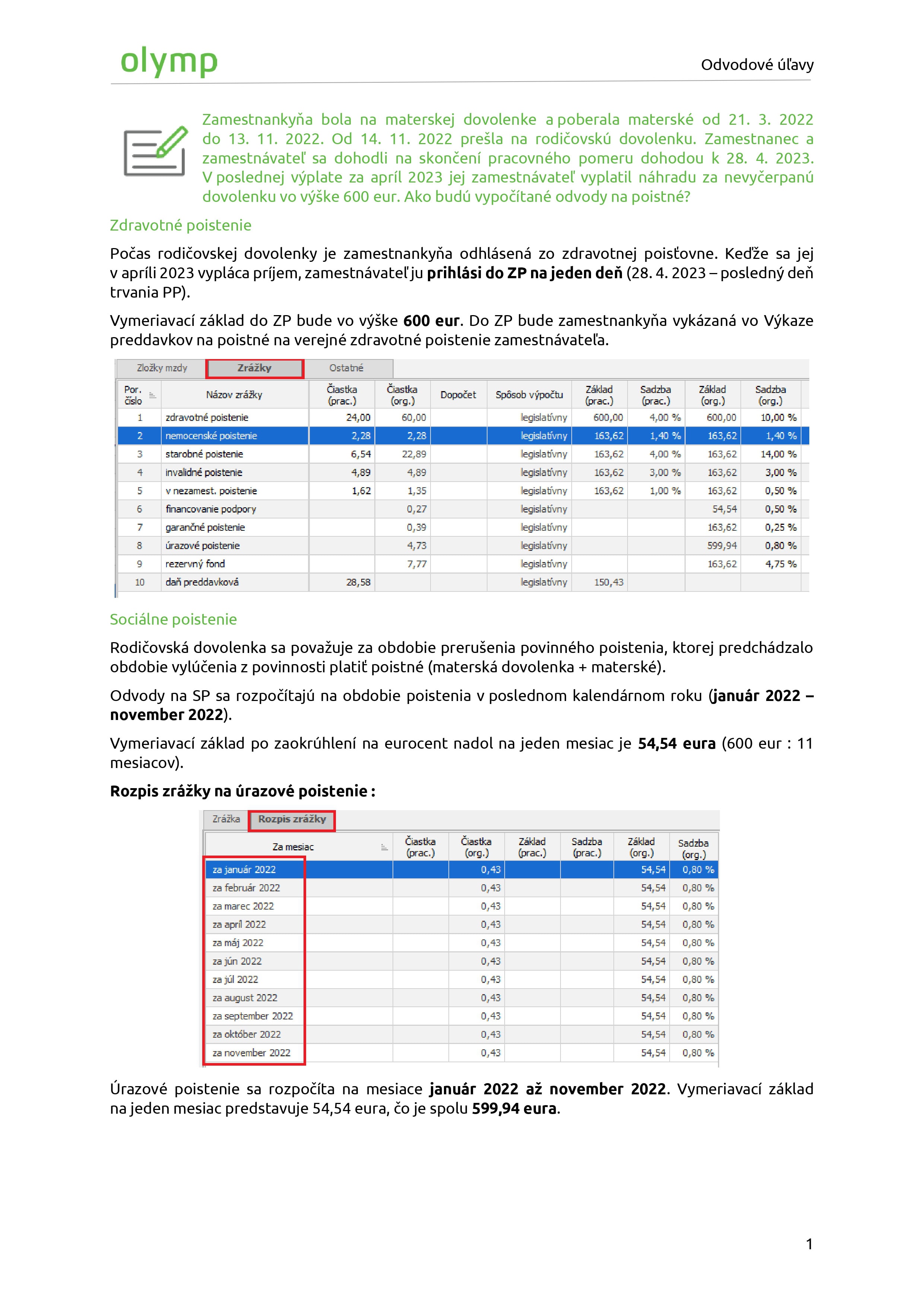 V e-booku sa venujeme odvodovým úľavám, ktoré si zamestnanci uplatňujú. Na zdravotné poistenie si môžu niektorí zamestnanci uplatniť odpočítateľnú položku, ktorá im zníži vymeriavací základ. Iní zo svojho príjmu neodvádzajú poistné na zdravotné poistenie vôbec. Výnimky sú aj na sociálne poistenie, kedy sa poistné z vymeriavacieho základu neodvádza do všetkých poistných fondov.