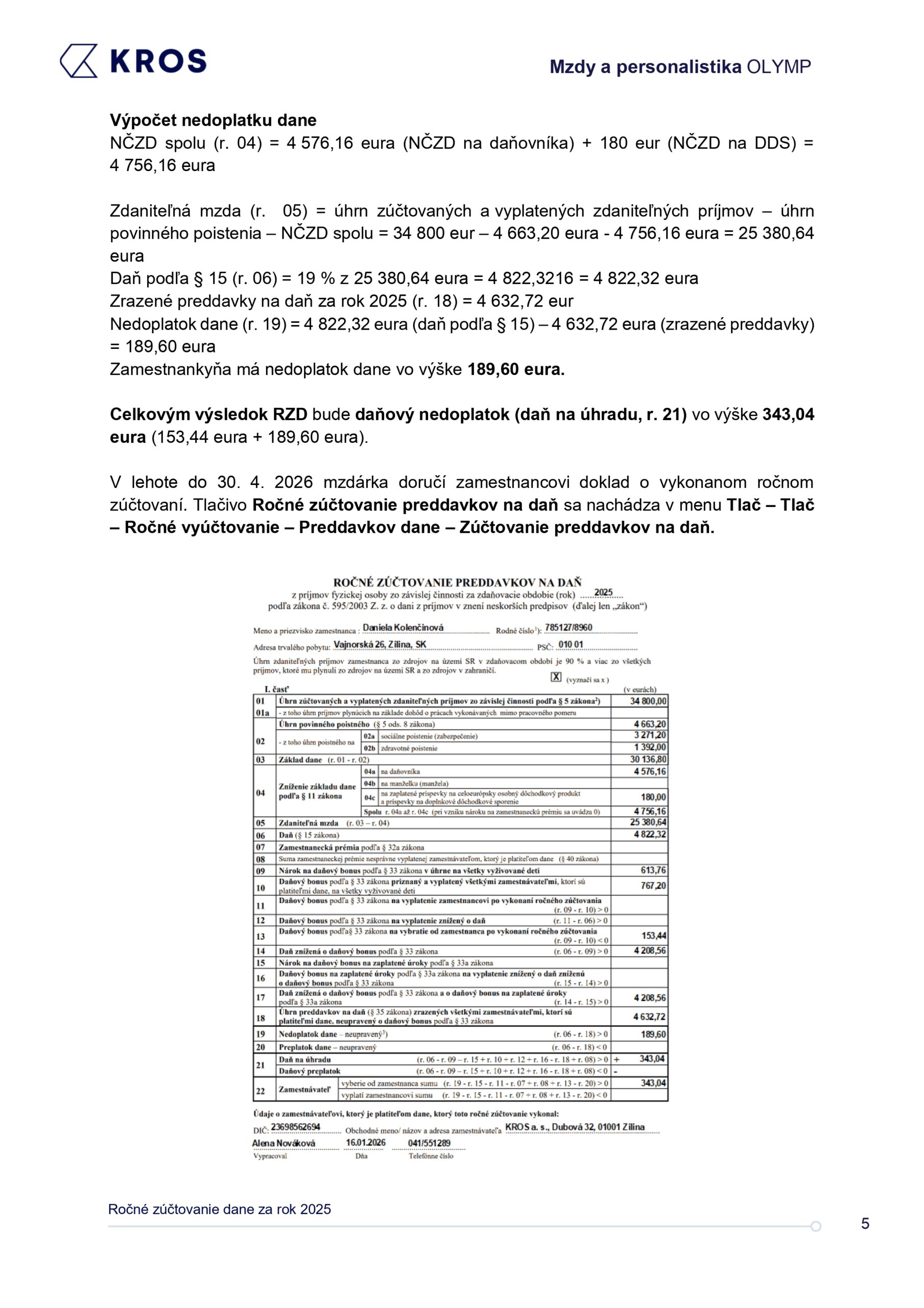 E-book obsahuje komplexný postup spracovania ročného zúčtovania dane za rok 2025 v súlade s platnou legislatívou. Nájdete tu vysvetlené základné legislatívne pojmy súvisiace s ročným zúčtovaním dane a praktické príklady aj s výpočtom daňového bonusu na dieťa a na zaplatené úroky. V e-booku sú prehľadne spracované povinnosti zamestnávateľa a zamestnanca, ako aj aktuálne daňové tlačivá s návodom na ich správne vyplnenie.