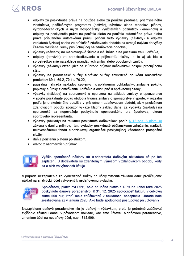 - Náklady uznané za daňové výdavky až po zaplatení.