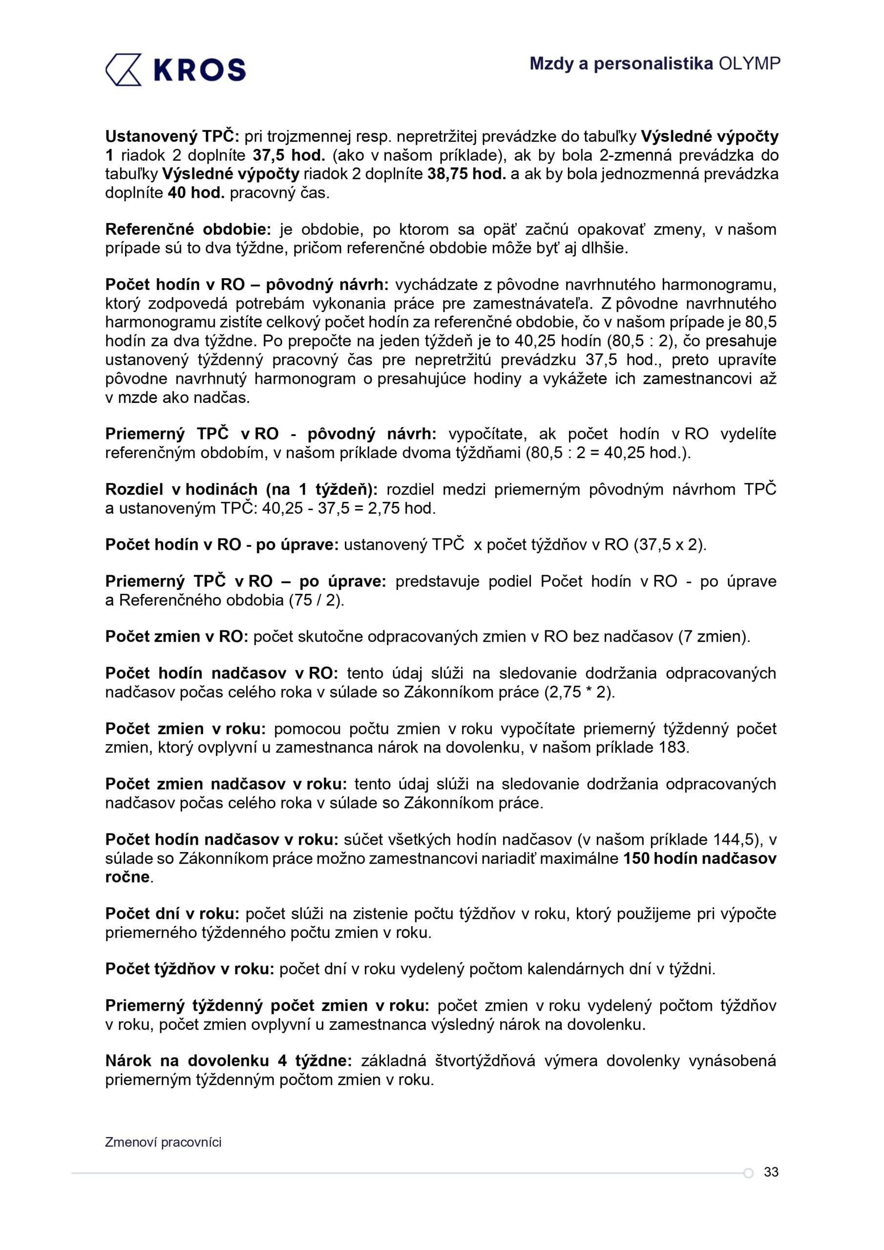 E – book podrobne rozoberá časti Zákonníka práce, ktoré upravujú prácu na zmeny. Dozviete sa, aké podmienky je potrebné dodržať pri nerovnomerne rozvrhnutom pracovnom čase. Pomôže vám správne nastaviť zmenové kalendáre a poskytne návod, ako evidovať zmenového pracovníka v programe Mzdy a personalistika OLYMP. Prevedie Vás výpočtom nároku na dovolenku ako aj prepočtom dovolenky pri zmene úväzku. V e-booku nájdete aj praktické príklady na výpočet príplatkov, ktoré je zamestnávateľ povinný zamestnancom vyplácať. Dozviete sa, ako zistite nárok na lekára a sprievod rodinného príslušníka a spôsob výpočtu odstupného/odchodného.